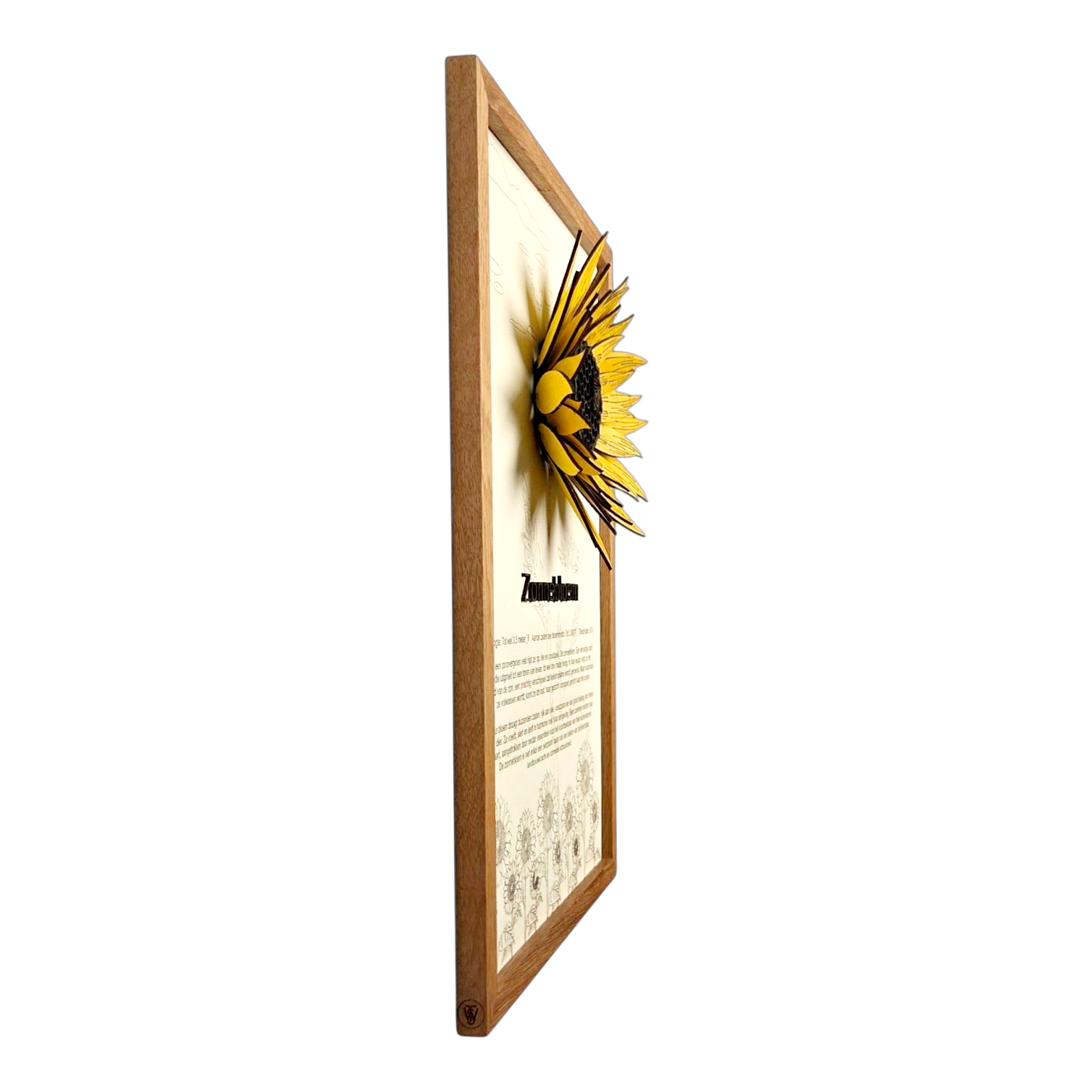 Je kunt de poster afstoffen met een zachte, droge doek. Vermijd vocht of schoonmaakmiddelen, omdat dit het hout of de verf kan aantasten.