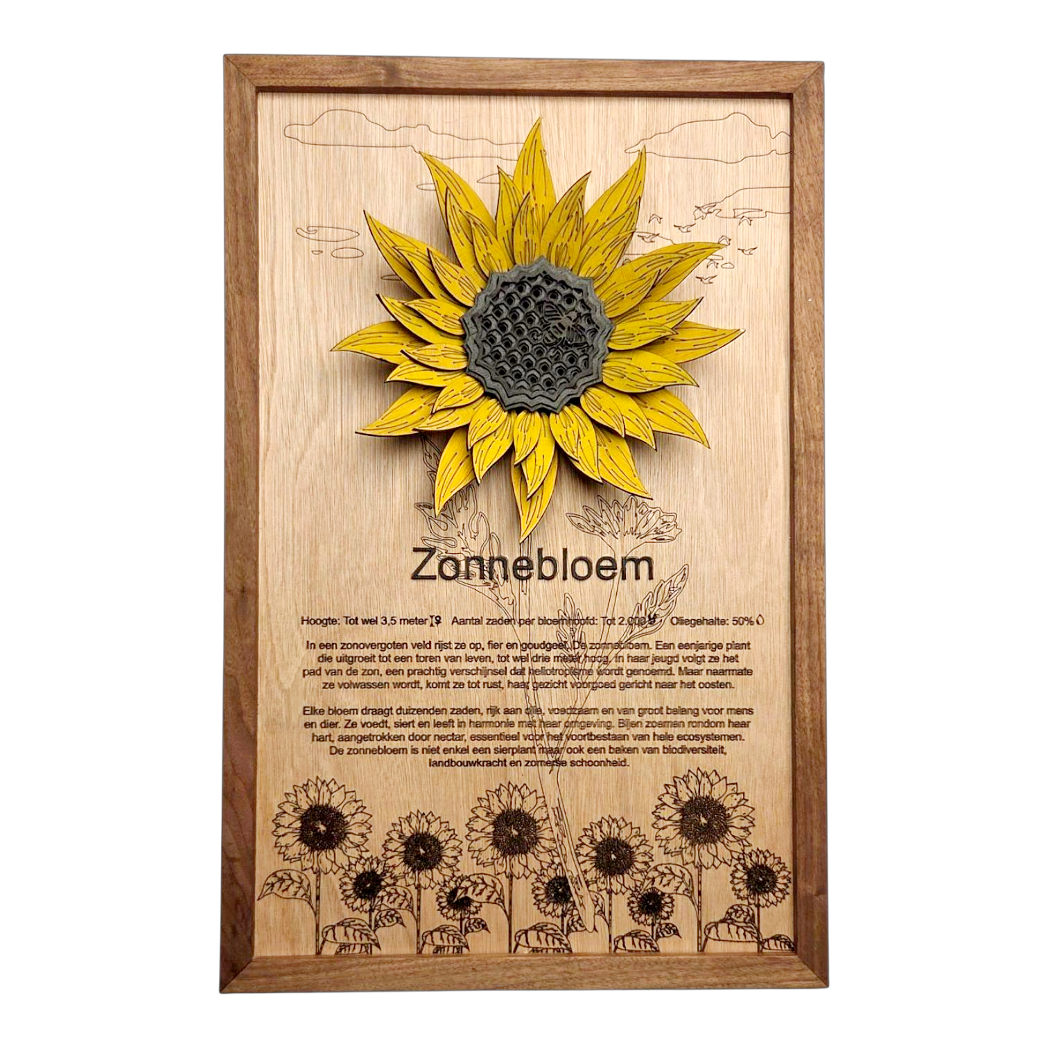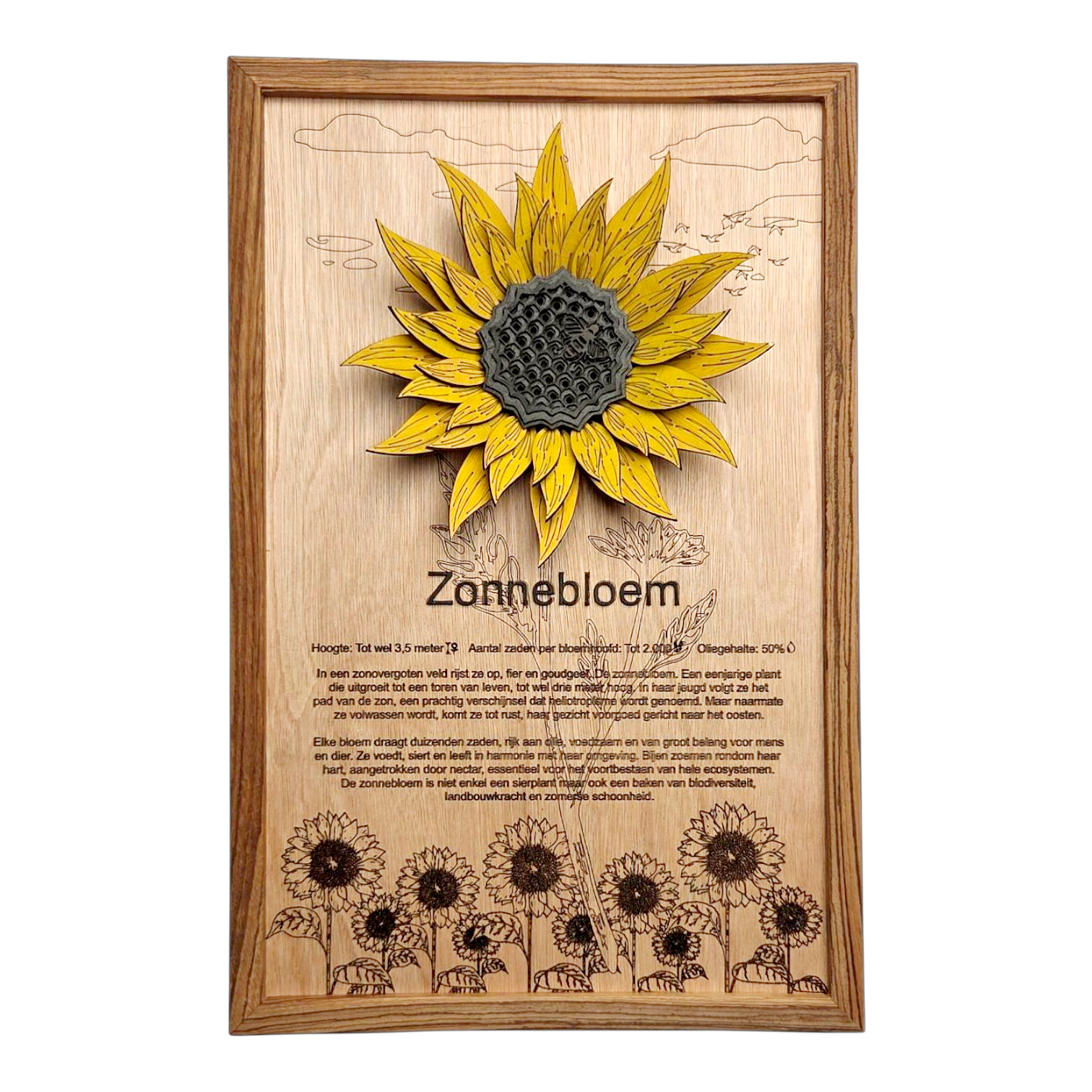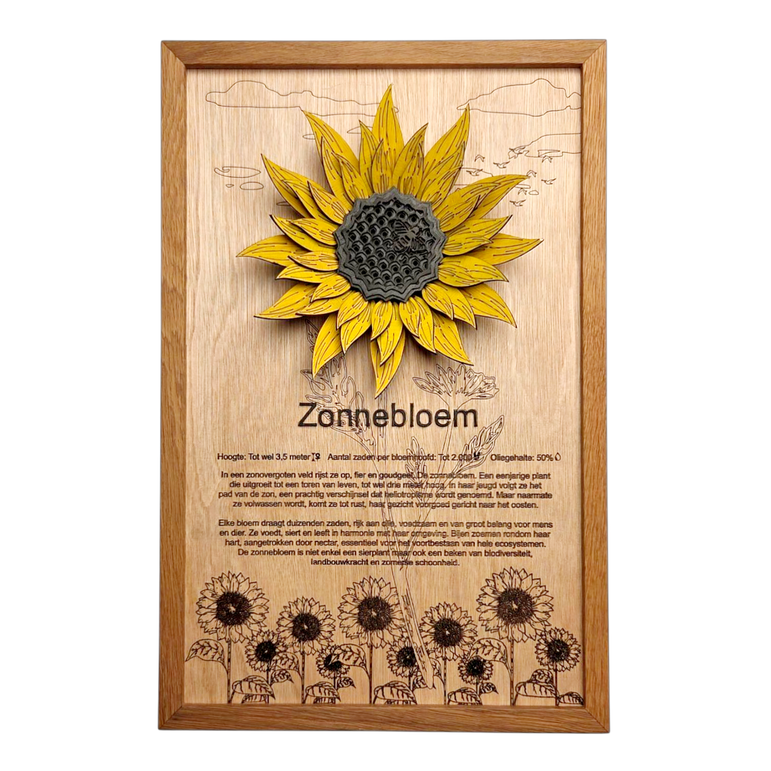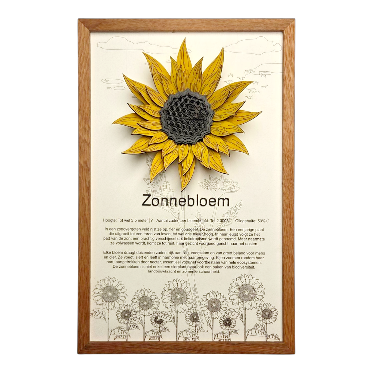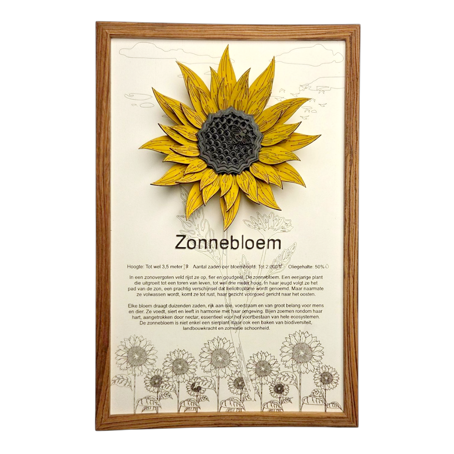 Ik vind de tekst bij de zonnebloem zo leuk om te lezen, dit is mijn favoriete bloem dus vond het leuk dat dit een optie was! Daarnaast staat de gele kleur heel leuk in mijn woonkamer, heel tevreden!