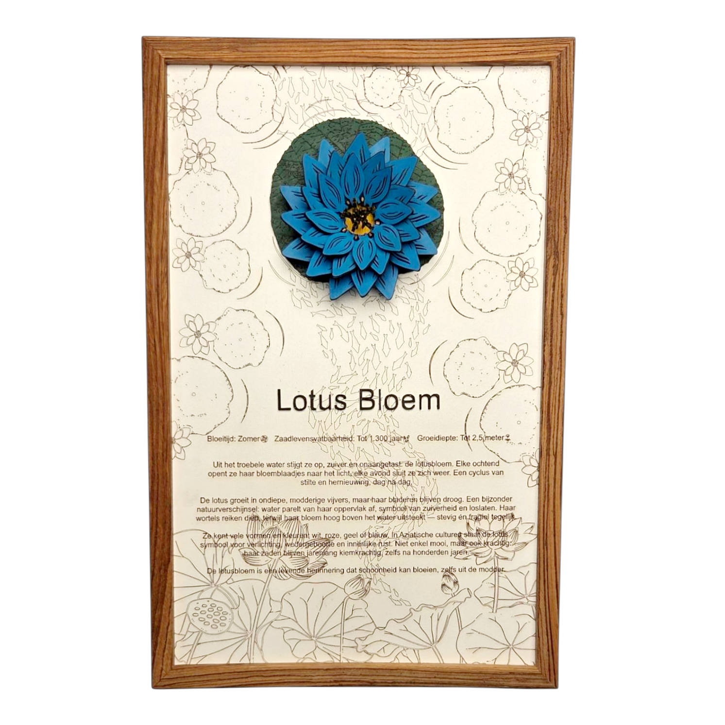 Je kunt de poster afstoffen met een zachte, droge doek. Vermijd vocht of schoonmaakmiddelen, omdat dit het hout of de verf kan aantasten.